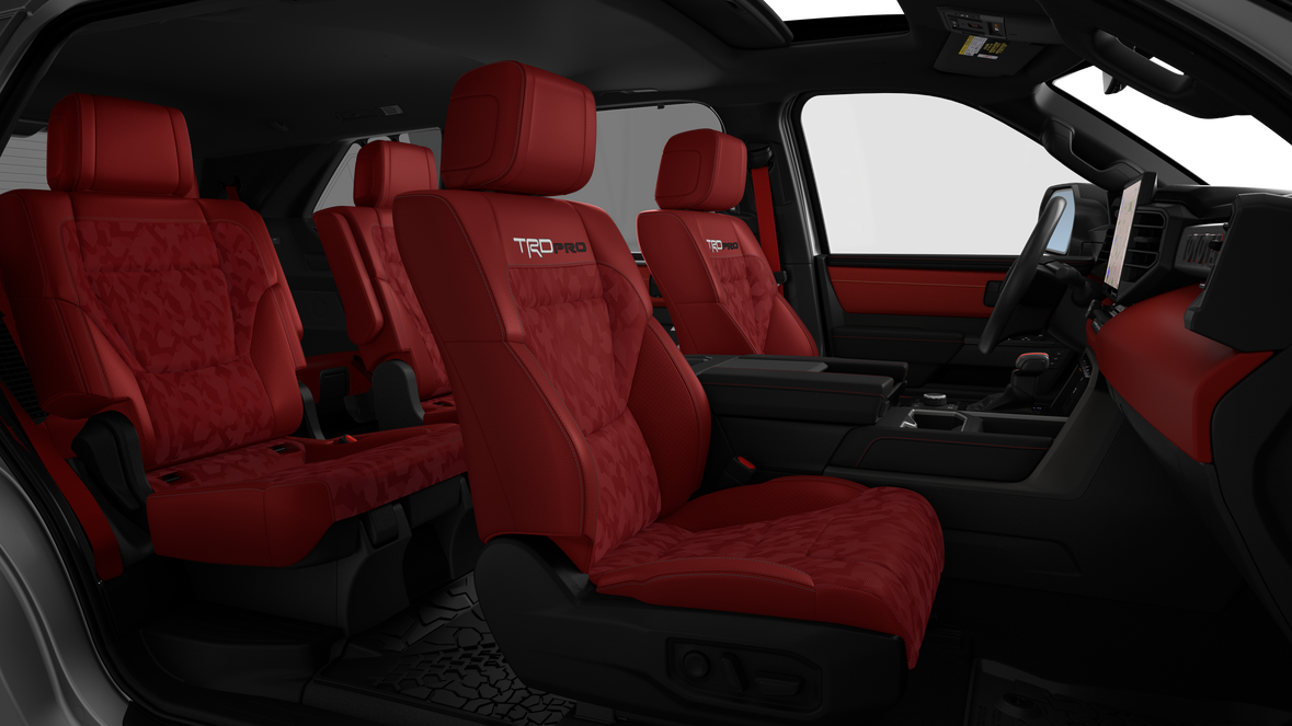 - TRD Pro SofTex®-trimmed seats with contrast stitching and technical-camo-pattern inserts; 8-way power-adjustable driver and front passenger seats with 2-way power-adjustable lumbar support