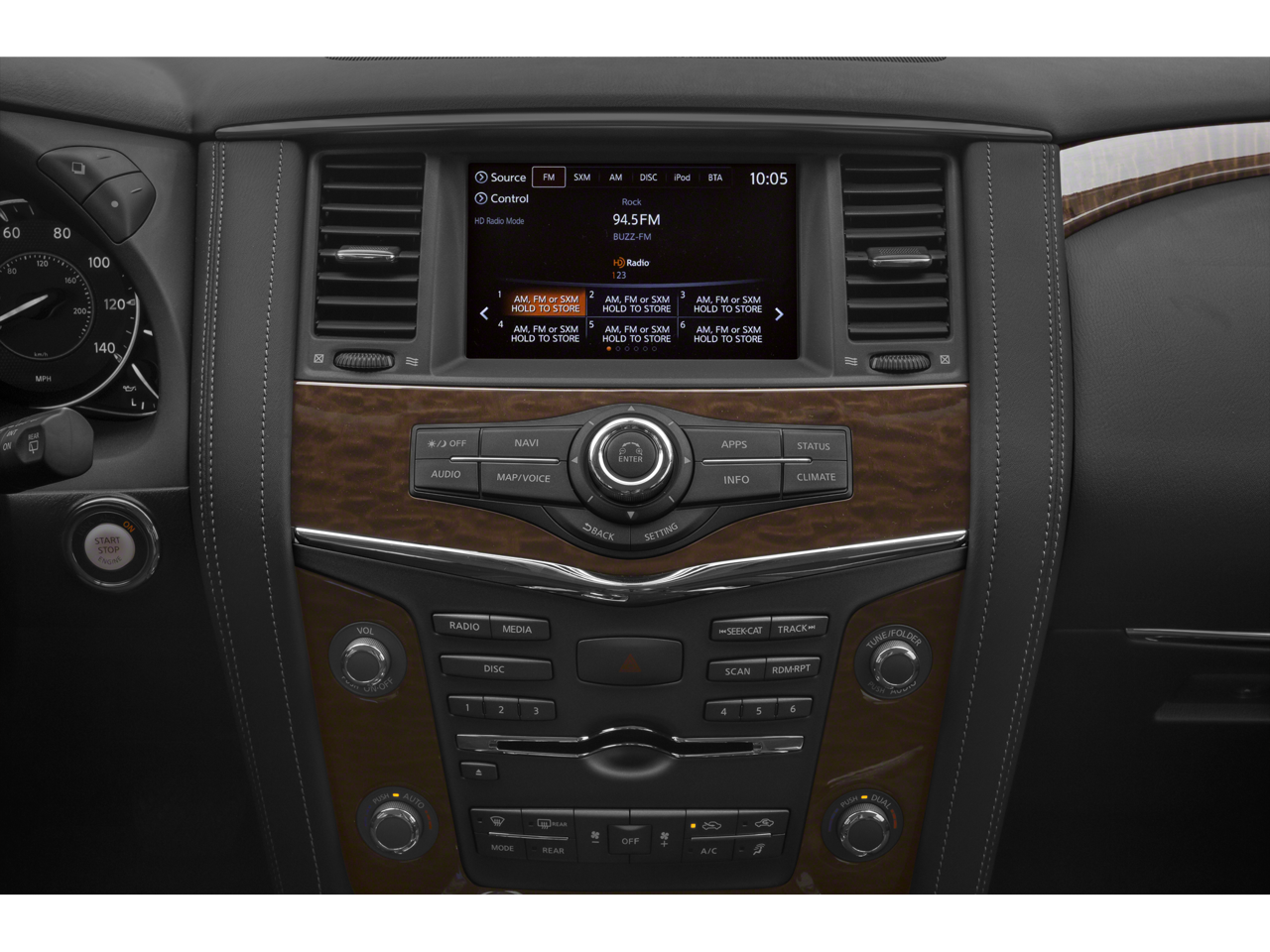 - Radio: AM/FM/SXM/CD/MP3/HD -inc: 13-speaker Bose audio system, Nissan Connect w/navigation and services, Nissan navigation system w/enhanced voice recognition, 8" color display w/multi-touch control, SiriusXM Traffic and Travel Link w/3 years complimentary trial access, NissanConnect services powered by SiriusXM and Bluetooth® hands-free phone system